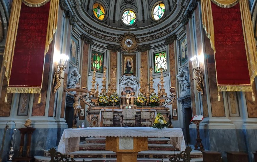 Sull’altare maggiore la pregevole statua che un tempo veniva ospitata sul grande carro del Battaglino Nella Napoli cinque – seicentesca non era inusuale che nobili famiglie aristocratiche si facessero promotori della costruzione di edifici religiosi, come a voler conquistare, in...