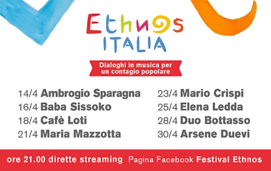 La rassegna in programma in streaming dal 14 al 30 aprile 2020 Si intitola “Ethnos Italia – dialoghi musicali per un contagio popolare”, la rassegna in streaming con dirette Facebook sulla pagina del Festival Ethnos che si alternerà dal 14...