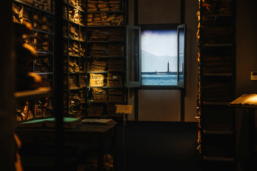 L’allestimento si sviluppa in tre scene e utilizza QR code per accompagnare viaggiatori e turisti alla scoperta dell’Archivio Storico del Banco di Napoli, favorendo il dialogo tra memoria, cinema e innovazione digitale.