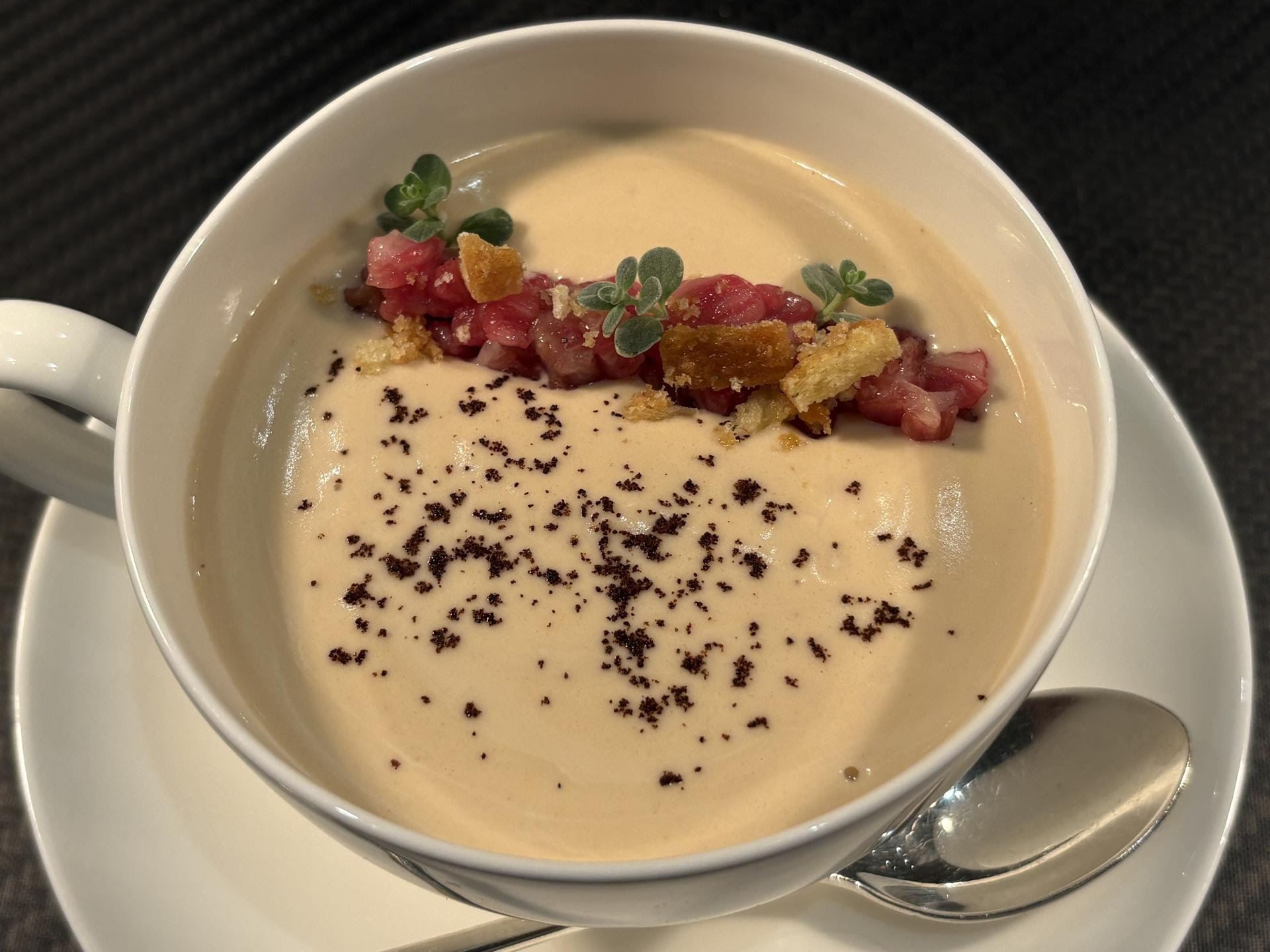 Un piatto che celebra il Natale con eleganza e audacia, firmato dallo Chef Alfonso Pepe, dove ogni cucchiaio racconta una storia di gusto, territorio e alta ospitalità.