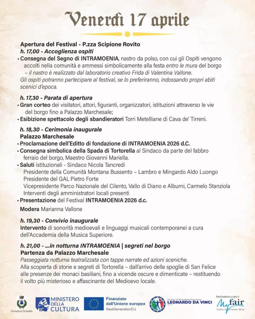 Intramoenia è un progetto corale che coinvolge istituzioni, scuole, associazioni, artigiani e cittadini, con l’obiettivo di valorizzare il patrimonio storico e identitario di Tortorella e del Cilento in generale attraverso un modello di turismo culturale esperienziale. E’ organizzato e realizzato dal Comune di Tortorella con il sostegno del Ministero della Cultura e il finanziamento dell’Unione europea – NextGenerationEU.