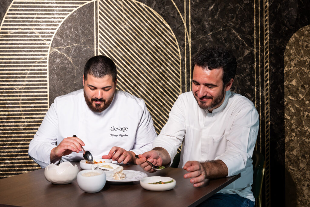 Con la direzione di Anna e Mario, il menu nasce da una “corrispondenza di amorosi sensi” tra l’Executive Chef Luca Fracassi, già chef e patron del ristorante Octavin di Arezzo e premiato con una stella Michelin nel 2022, un ricercatore appassionato che propone una cucina di sostanza, profumi e zero sprechi con eleganti accenti orientaleggianti, e il Resident Chef Vincenzo Cozzolino, interprete della tradizione campana in chiave contemporanea. La sinergia tra i due chef è inedita e ambiziosa, e dà forma a una ristorazione contemporanea concreta, dinamica e in costante evoluzione, dove la competizione lascia spazio a una sinergia con la S maiuscola. Poi c’è il Sommelier Daniele Barbato, classe ’86, che accompagna gli ospiti con professionalità e cura, nella proposta di una carta dei vini unica, con oltre 200 referenze di Champagne e 700 di vini. La carta riflette l’idea di Anna e Mario di importare lo stile francese nell’esperienza quotidiana, dimostrando che lo Champagne può essere un piacere quotidiano, conviviale e non elitario, proprio come accade a Aÿ o Épernay dove è accompagnato da un tagliere di formaggi e salumi locali. E se dalla Francia i patron di Élevage Wine Restaurant hanno “importato” il culto dello Champagne, da New York hanno assorbito l’abitudine di vivere il cocktail bar all’interno del ristorante. La firma della mixology è il giovane bartender Antimo De Cristofaro, classe ’94, napoletano, che propone al bancone una mixology snella e aromatica, con particolare attenzione alle bevute a basso tenore alcolico e analcoliche.