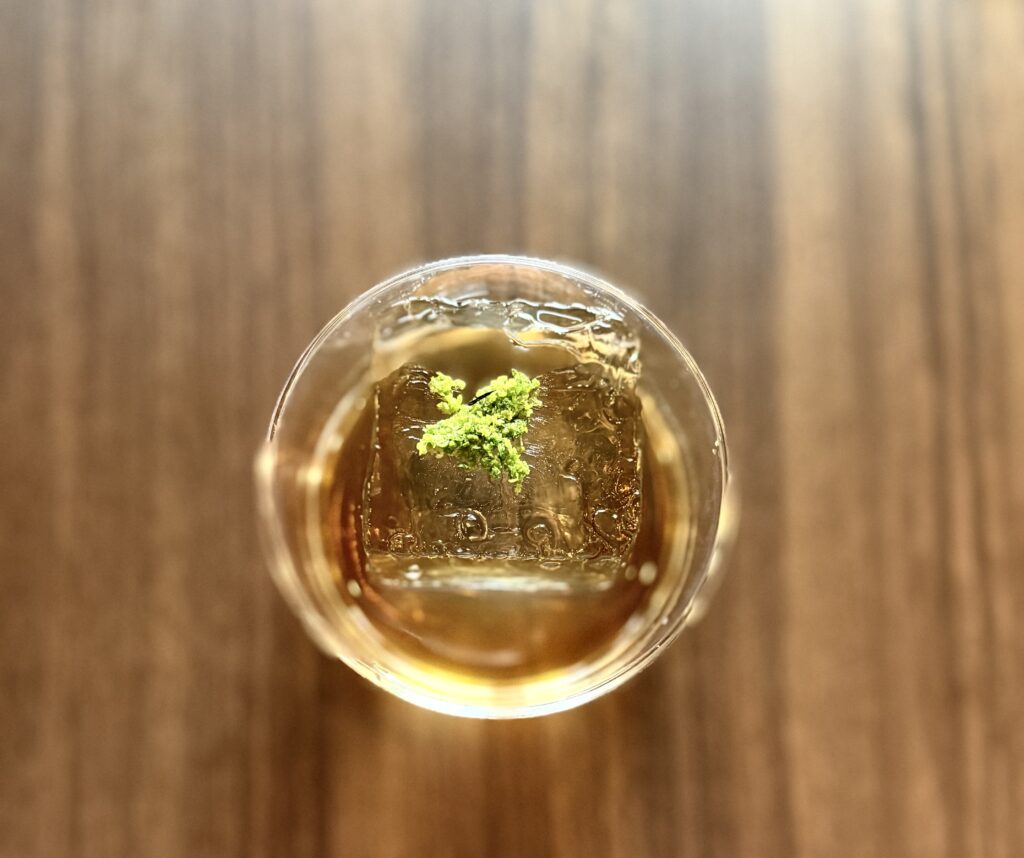 Il menu inizia con un elogio alla sapidità: ostrica, verza e capperi aprono il percorso, poi il mare continua a raccontarsi attraverso la cozza dei Campi Flegrei e la lattuga di mare, un’alga tipica delle coste rocciose e delle acque limpide del Mediterraneo. Si passa quindi al primo piatto: le trottole con stagionato di bufala e granciporro, per arrivare allo stoccafisso, il “pesce di montagna” tipico delle aree interne vesuviane– accompagnato da una purea di limone e cavolfiore. Segue un predessert per nulla scontato, con pomodoro bruciato, candito e fermentato, e infine il dessert, con crema, porcini e Provolone del Monaco. Il percorso si chiude con il cocktail “Terra”, ideato dal bartender Antimo De Cristofaro, a base di Bourbon whisky, albicocca, porcini, acero e lime.