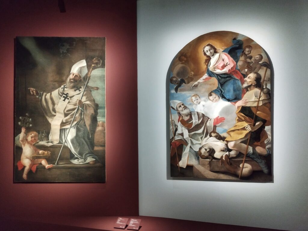 La mostra, che vanta prestiti internazionali ed opere mai esposte prima d’ora, prende il via da Fede Galizia, una pittrice milanese specializzata in ritratti, che operò a Napoli nella Chiesa di Sant’Anna dei Lombardi e quella di San Carlo Borromeo alle Mortelle: dalla prima viene una splendida Adorazione dei Magi, dalla seconda il San Carlo che venera la croce dove il Santo milanese, avvolto in un ricco piviale di broccato rosso fermato al petto da una spilla gioiello, stringe tra le mani una grossa croce dove tradizionalmente era conservato un chiodo del martirio di Cristo. Dipinta per i Barnabiti, la tela presenta una attenzione per i dettagli e guarda al naturalismo napoletano dove l’uso della luce fredda suggerisce una atmosfera intima, tipica della pittura controriformata.