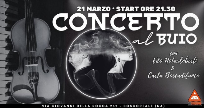 Il concerto, che si svolgerà interamente al buio, propone una serie di componimenti realizzati dai due artisti protagonisti della serata, Edo Notarloberti e Carla Boccadifuoco, che regaleranno al pubblico un viaggio sensoriale surreale, in cui pianoforte e violino si uniranno a formare un’unica vibrazione.