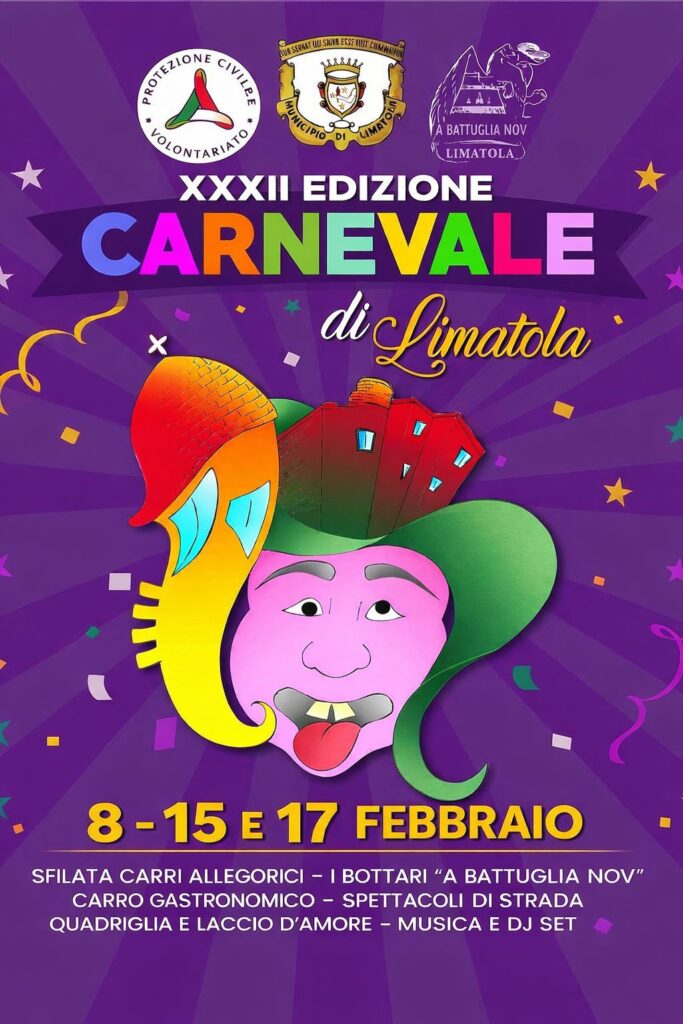 Edizione numero 32 per il Carnevale di Limatola, in provincia di Benevento. La manifestazione animerà le strade del centro sannita con tre sfilate di carri e maschere in programma domenica 8, domenica 15 e martedì 17 febbraio 2026.