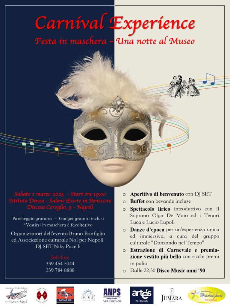 Presso l’ Istituto Denza di Napoli in scena, sabato 1 marzo 2025 alle ore 19:00, “Carnival Experience – Una Notte al Museo”, una straordinaria festa in maschera che promette di regalare un’esperienza unica e immersiva tra musica, spettacolo e divertimento.