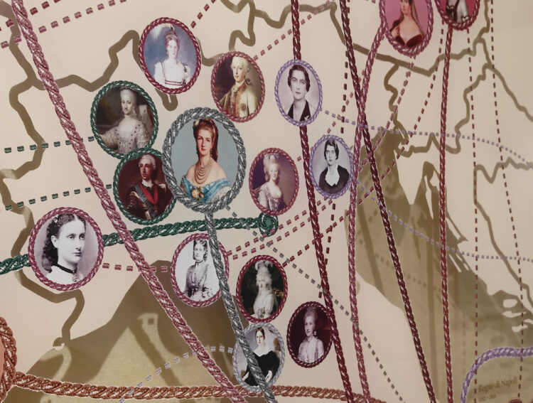 All’interno della mostra a loro dedicata nel Palazzo Reale di Caserta, i primi ritratti ufficiali di famiglia (splendido quello della Regina Maria Teresa d’Austria di  Martin van Meytens) introducono alla ferma volontà, da parte delle case reali, di manifestare un saldo potere politico in un’Europa sempre in equilibrio precario tra guerre, rivoluzioni, armistizi e trattati di pace sanciti proprio da unioni tra nobili “rampolli”. E questa complicata geografia, tracciata da corone, è ben comprensibile in un interessante video con intricati alberi genealogici, presente proprio ad apertura mostra.