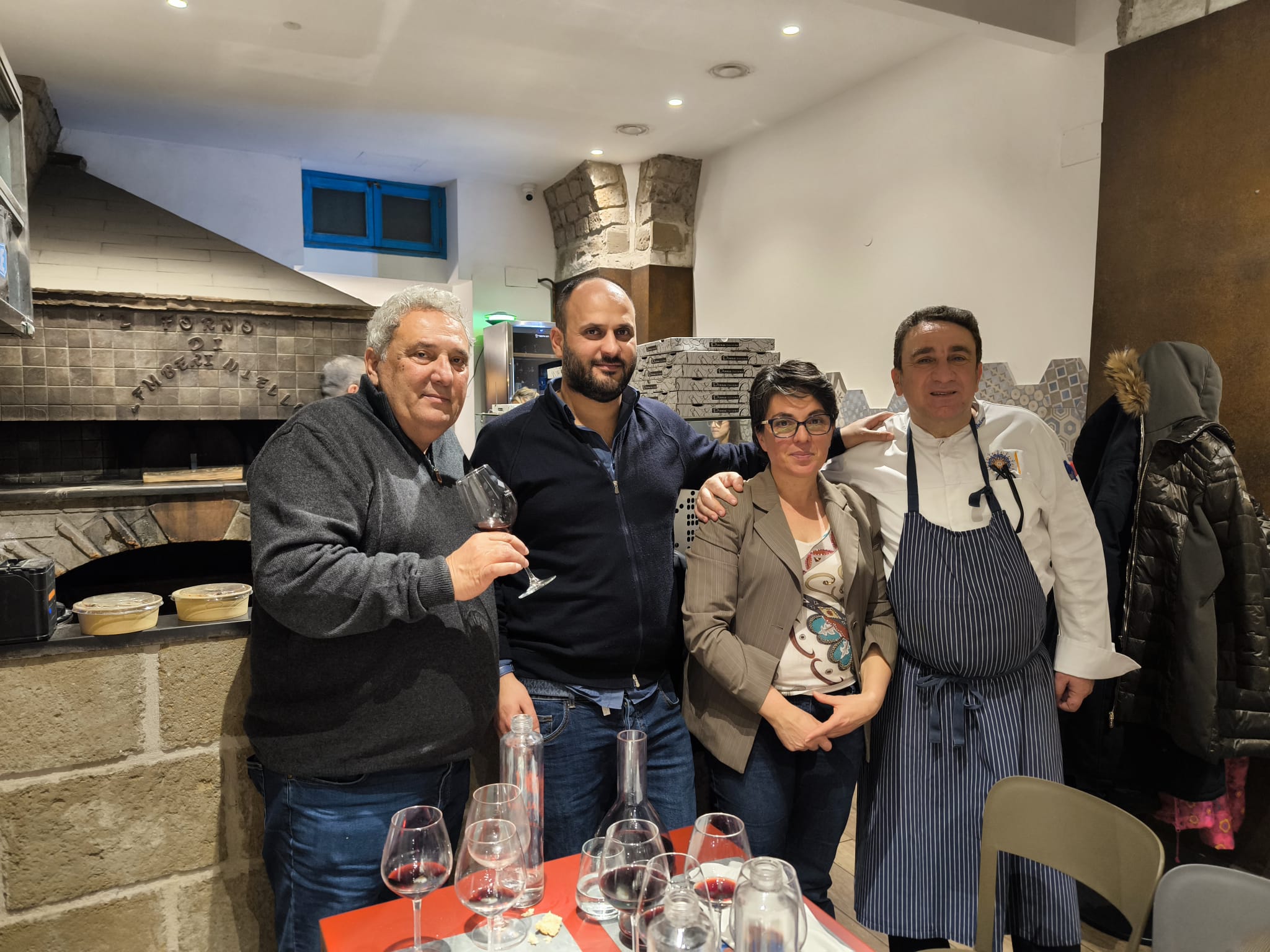 Ospite della serata, La Cantina di Enza, azienda agricola da quattro generazioni – oramai quasi cinque – i cui vigneti si trovano ad un’altitudine di circa 400 mt, sulle colline di Montemarano in provincia di Avellino. Con dieci etichette in produzione, Enza Saldutti insieme alla sua famiglia, hanno festeggiato nel 2025, la loro venticinquesima vendemmia. A conferire valore aggiunto al menù proposto – da solo è bastato a convincere i presenti – tre deliziose etichette che ben si sposavano con i piatti scelti.