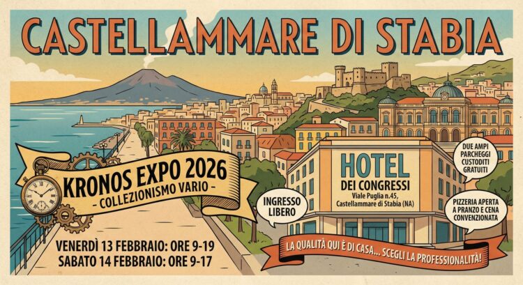 Situata nel cuore della “perla del Golfo di Napoli”, la location offrirà una vista mozzafiato del monte Faito e un’accoglienza di alto profilo per tutti i visitatori. L’ANFC ha posto l’accento sulla qualità dell’esperienza di visita, garantendo servizi d’eccellenza: Ingresso totalmente libero e gratuito, due ampi parcheggi custoditi e videosorvegliati gratuiti, servizio pizzeria attivo in loco a pranzo e cena in convenzione con la struttura. Il Presidente ANFC, Attilio Maglio, commenta così l’iniziativa: “Gentili cultori e collezionisti, nello splendido scenario dell’antica Stabiae, dove il passato affonda le sue radici tra mito, mare e monti, vi invitiamo a scrivere una nuova pagina della nostra tradizione. L’esposizione si ispira alla Sylloge (dal greco Συλλογή), un concetto antico e raffinato che non indica il semplice accumulo, ma una “raccolta ragionata”, frutto di intelletto e scelta. L’atto di sottrarre frammenti di eternità all’oblio cronologico, monete, banconote, francobolli, storia postale, libri, cartoline, oggettistica varia, per restituire loro voce e identità. Crediamo fermamente che la passione e la conoscenza debbano essere prive di barriere. Per noi la cultura non è speculazione, ma un patrimonio da condividere liberamente. Coerenti con questa visione, vi attendiamo all’Hotel dei Congressi, per vivere un’esperienza dove la comodità incontra l’eccellenza, senza alcun costo, se non quello del vostro tempo prezioso”.