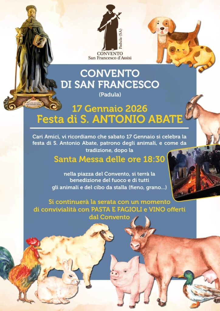Benedizione fuoco e degli animali a Padula dove il convento offrirà pasta e fagioli e tanto buon vino