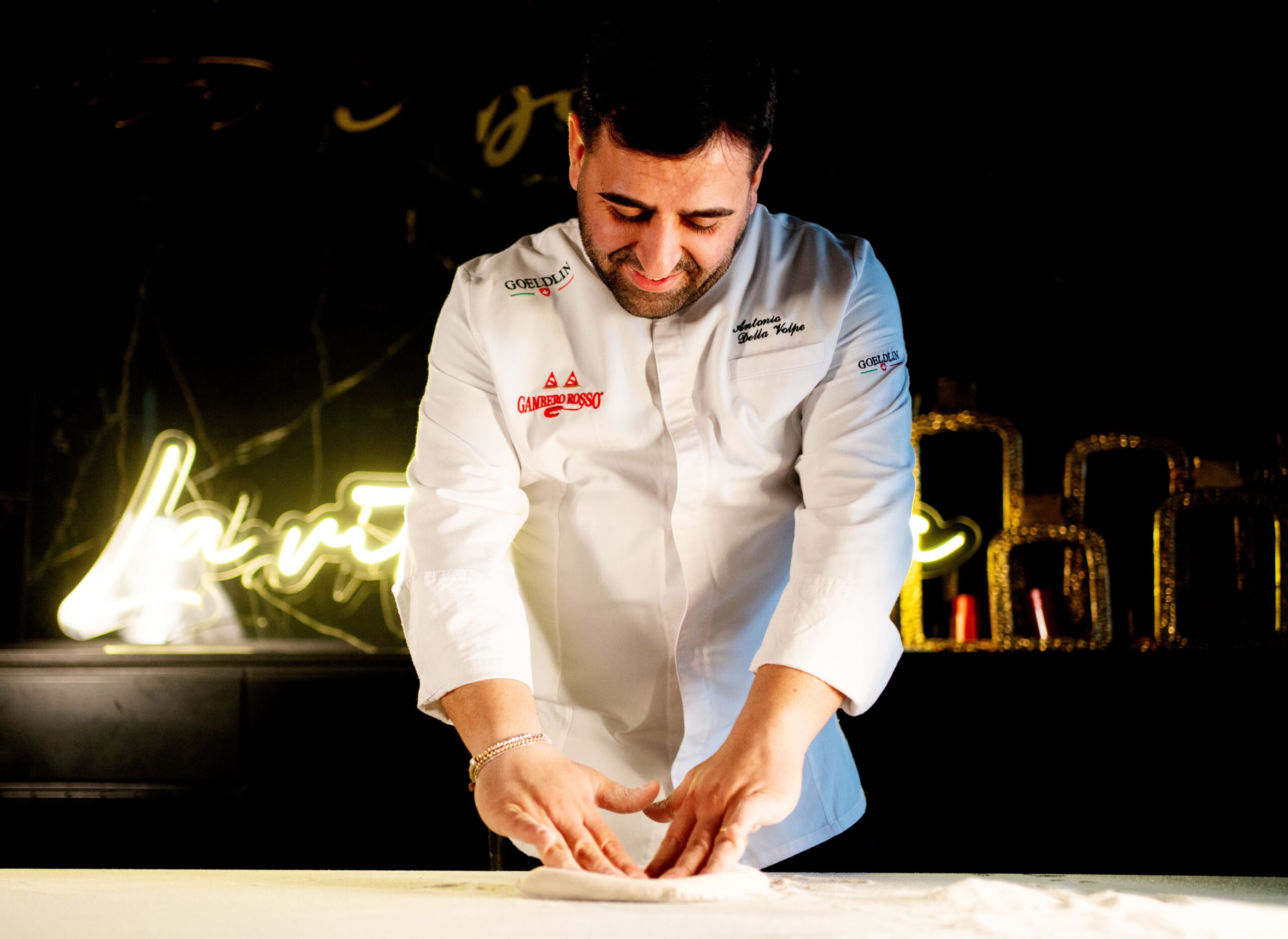 Antonio Della Volpe si forma all’alberghiero di Castel Volturno e lavora in cucine di prestigio come quelle del Grand Hotel Parker’s e dell’Hotel Eden di Roma. Nel 2007 apre il primo La Vita è Bella a Trentola Ducenta. Notando l’interesse crescente per la pizza, nel 2015 inizia a studiare l’arte bianca in modo approfondito. Nel 2017 vince la Pizza World Cup con la pizza “La Vita è Bella”, preparata con fior di latte di Agerola, datterini rossi e gialli, guanciale di maialino nero casertano, perline di bufala, caciocavallo, provolone del Monaco, olio extravergine e basilico. Nel 2021, insieme al cognato Amedeo Galoppo, apre il nuovo La Vita è Bella a Casal di Principe, un locale moderno con forni a vista e circa cento coperti. Dall’edizione 2025 la pizzeria è premiata con 2 Spicchi nella Guida Pizzerie d’Italia del Gambero Rosso ed è presente anche nella guida Pizza&Cocktail di Identità Golose.