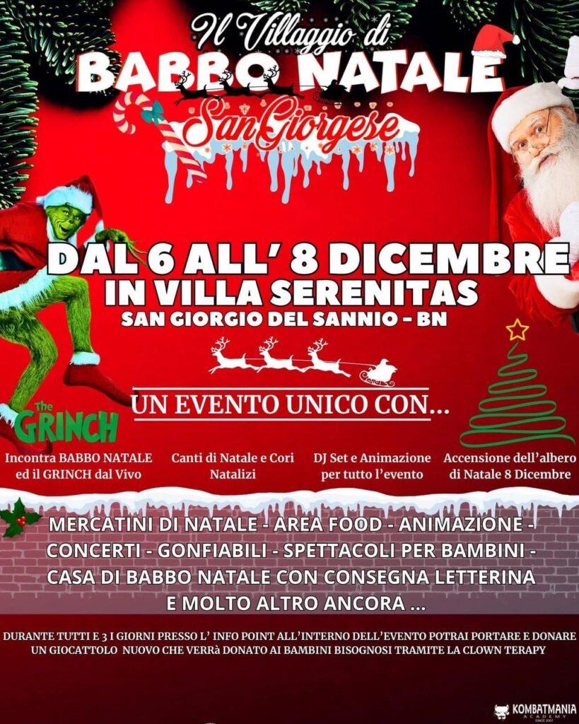 Appuntamento dal 6 all’8 dicembre 2025 a San Giorgio del Sannio con l’edizione 2025 del Villaggio di Babbo Natale San Giorgese che sarà ospitato negli spazi della Villa Serenitas.