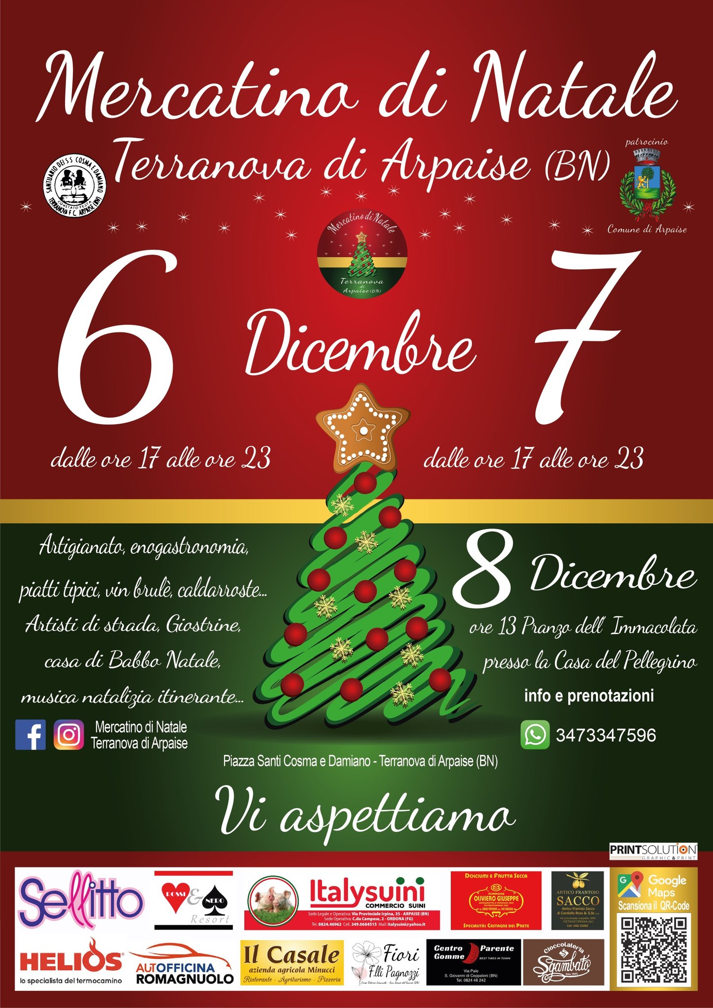 Il borgo si illumina di magia! Tra i vicoli che circondano i ruderi del Castello Medievale e la splendida piazza del Santuario dei Santi Cosma e Damiano, torna l’appuntamento più atteso dell’anno: il Mercatino di Natale di Terranova di Arpaise. Nelle tre giornate, 6-7-8 dicembre, si trovano stand enogastronomici con prodotti tipici e prelibatezze locali: Caciocavallo impiccato, caldarroste, vin brûlé, montanare, cioccolata calda e dolci natalizi; Luci, musica itinerante, spettacoli per immergersi nella magica atmosfera natalizia.