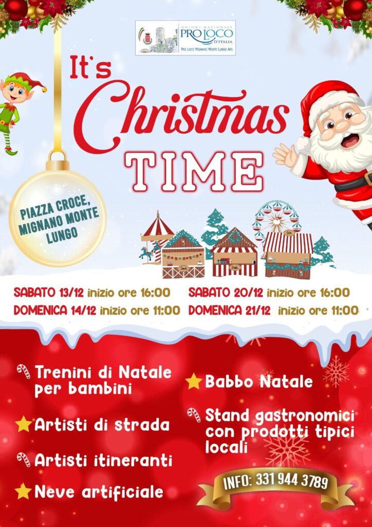 Tutto pronto per i Mercatini Natalizi a Mignano Monte Lungo. Quattro giorno per scoprire l’artigianato locale, le idee regalo uniche e le deliziose specialità gastronomiche. Un’atomosfera unica e calda, perfetta per grandi e piccini. In programma il 13 e 14 e il 20 e il 21 dicembre 2025 in Piazza Croce. Orario: dalle 16.00 alle 20.30 (13 Dicembre; 20 Dicembre). Dalle 11:00 alle 13:30 e dalle 16:00 alle 20:30 (14 Dicembre; 21 Dicembre).
