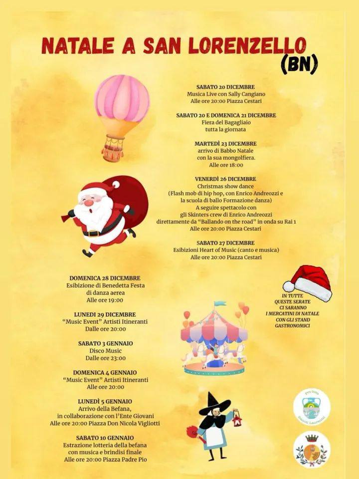 Ufficializzato il programma di eventi natalizi che accompagnerà questo periodo di festa a San Lorenzello, in provincia di Benevento. Tanti appuntamenti per grandi e piccini a partire dal 20 dicembre 2025 e fino al 10 gennaio 2026.