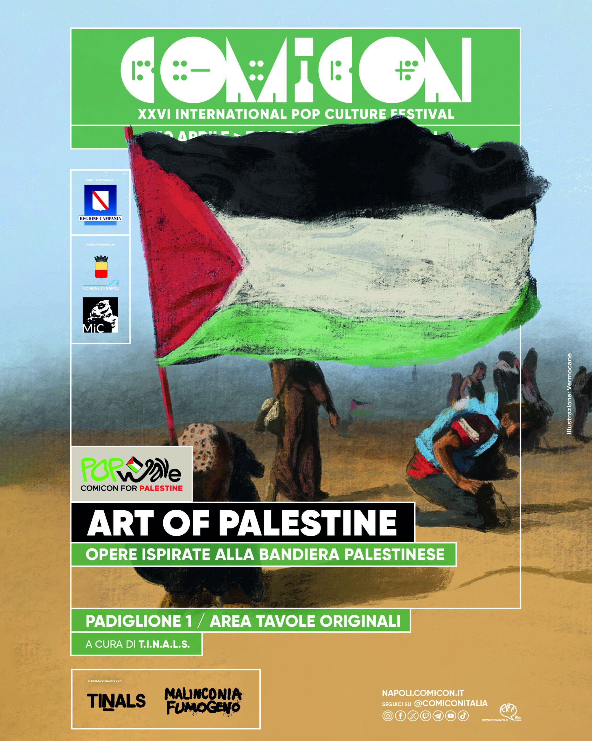 A COMICON Napoli 2026 la pop culture si svela a 360°: dal fumetto all’animazione, dalla fotografia al cinema, dall’attualità alla street art: venticinque percorsi espositivi da visitare alla Mostra d’Oltremare dal 30 aprile al 3 maggio. Tra questi: “Leologia”, inedita e autoironica retrospettiva dedicata al Magister Leo Ortolani; “Caos cromatico”, omaggio alla carriera del direttore artistico di film animati e poster artist COMICON Aurélien Predal; “Orbit Orbit” che mostra per la prima volta tavole e schizzi inediti dell’opera di Caparezza; “Vinland Saga”, alla scoperta del leggendario capolavoro di Makoto Yukimura, un manga d’azione bestseller diventato uno straordinario trattato sulla non violenza; “Ossessione”, che esplora l’arte di Nine Antico, icona francese del fumetto femminista; “È mille colori”, esplorazione dell’universo del sette volte candidato ai Premi Eisner Federico Bertolucci; le mostre del programma “Pop Wave – COMICON for Palestine” per dar voce a un popolo che rischia la cancellazione globale; “Storyboard! Il cinema disegnato di David Orlandelli”. Inoltre, si uniscono agli ospiti internazionali di COMICON Napoli la mangaka giapponese Kotteri e la fumettista coreana Yudori alle quali saranno dedicate le mostre “Atelier Kotteri!”, e “Yudori: La ricerca dei tempi”.