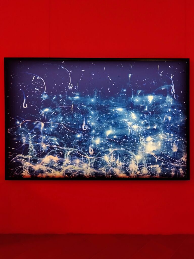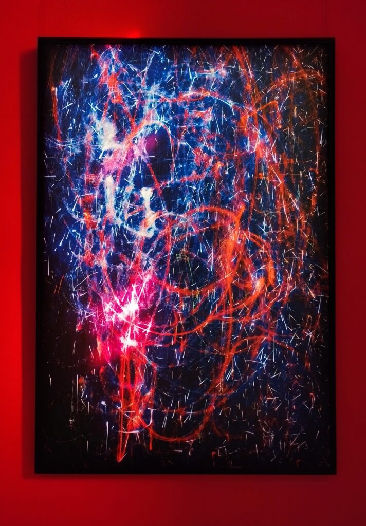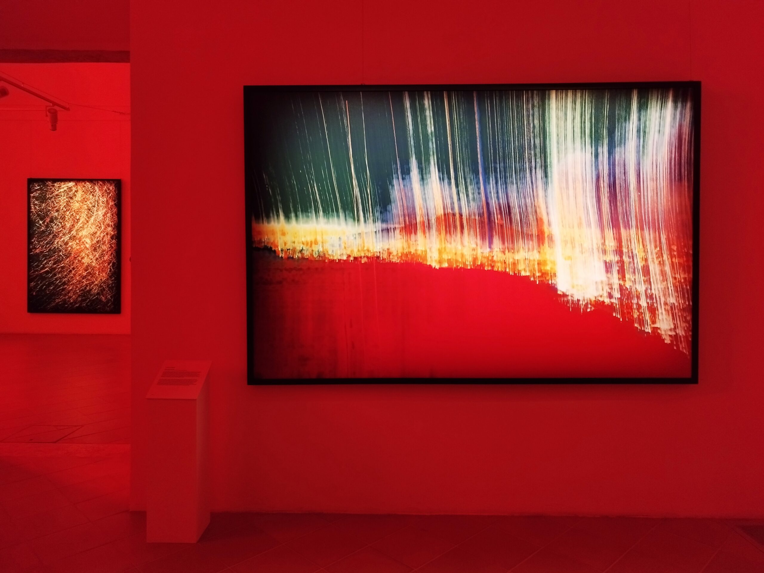 Le fotografie di Mario Amura raccontano del profondo legame dei napoletani con il Vesuvio e la città in un momento particolare dell’anno, la notte di San Silvestro. Per quindici anni l’Artista ha assistito al capodanno dal Monte Faito, il quella notte magica dove all’improvviso il cielo si riempie della luce e dei colori dei fuochi d’artificio, come se una lava incandescente si alzasse dal vulcano in quiete. Gli scatti descrivono questo rito collettivo in una esplosione, cui sapientemente fa riferimento il titolo della mostra, che riempie di linee, curve, fili, girali l’intera atmosfera. Le 33 opere esposte sono fortemente materiche e non sono mai manipolate digitalmente, se non per intervenire sul colore, per accentuarlo o attenuarlo fino a raggiungere la giusta perfezione. Le sale dell’Albergo dei Poveri dove sono esposte, volutamente oscurate e riempite di una luce rossa, sono una camera magmatica, il luogo del vulcano dove ribolle la materia ma è anche il richiamo alla camera oscura del fotografo, dove si svolge la magia della cristallizzazione di un attimo dell’eternità in una foto. È questa la missione del fotografo, catturare un istante ed eternizzarlo, portando avanti quel grande lavoro iniziato dalla pittura impressionista, che cercava di imprimere nella tela l’emozione di un istante. Quello di Amura è un lavoro poetico che unisce in sé arte, percezione, luce, un inno di amore per la città che ben si inserisce nel contesto delle celebrazioni dei 2500 anni della fondazione di Napoli.