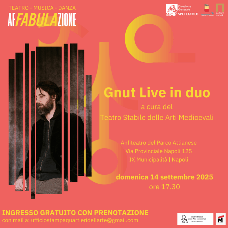 La musica d’autore farà tappa nella periferia occidentale con la partecipazione di Gnut, cantautore napoletano che da anni calca le scene musicali seguendo il suo cammino unico e personale. Il concerto, che vedrà protagonista anche il violinista Marco Sica, si terrà domenica 14 settembre alle ore 17:30 presso l’Anfiteatro del Parco Attianese del quartiere Pianura, con ingresso gratuito: un appuntamento realizzato dal Teatro Stabile delle Arti Medioevali, che rientrerà nel programma di “Pianura Opera House 3”, rassegna promossa dal Comune di Napoli nell’ambito del progetto “Affabulazione” e finanziata a valere sul Fondo nazionale per lo spettacolo dal vivo della Direzione Generale Spettacolo del Ministero della Cultura.