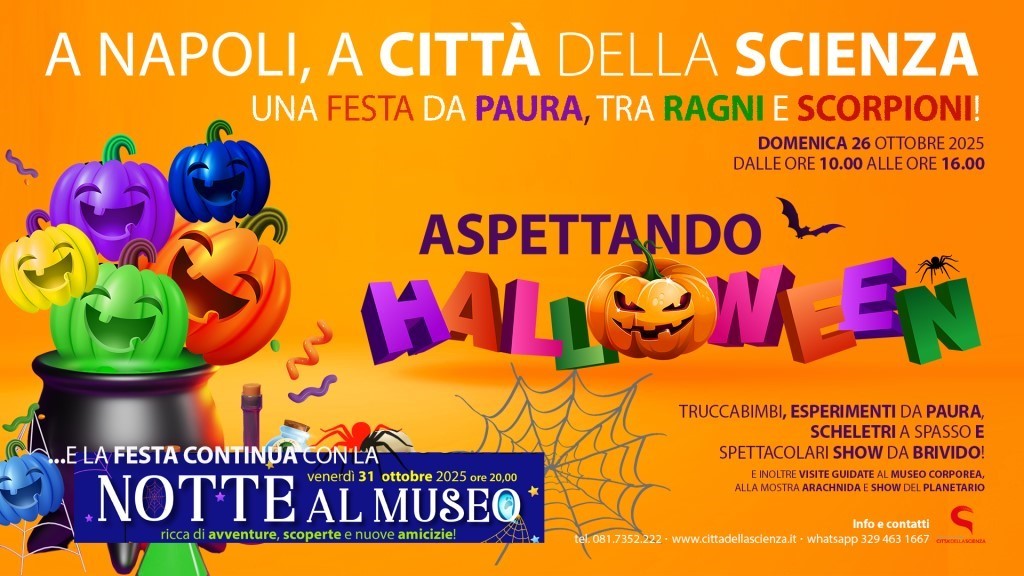 Città della Scienza è pronta a festeggiare Halloween con due imperdibili appuntamenti dedicati ai grandi e piccoli. Tra scienza, divertimento, laboratori ed atmosfere suggestive, si regaleranno momenti indimenticabili di spensieratezza e vivacità. Ecco il programma: