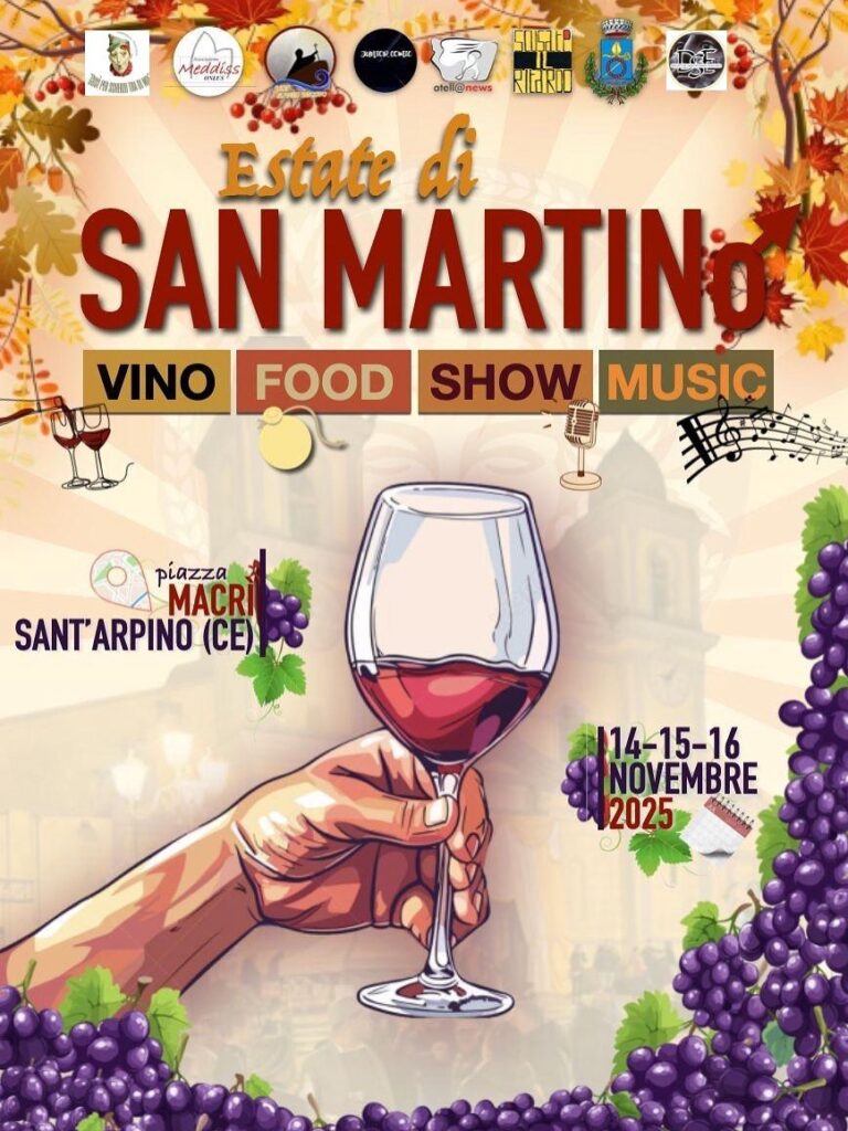 “Dove novembre sa di estate, brace e vino, San Martino si festeggia a Sant’Arpino”, in provincia di Caserta. Appuntamento dal 14 al 16 novembre 2025 in Piazza Macrì, ogni sera a partire dalle ore 19.30.