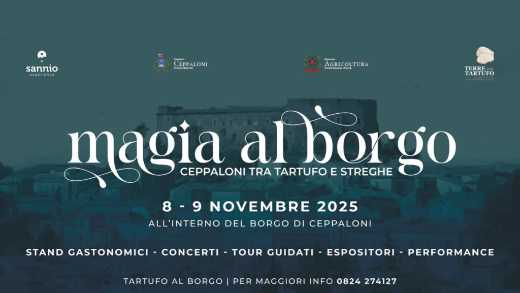 Una due giorni a Ceppaloni tra tartufo e streghe. Appuntamento nel borgo sannita sabato 8 novembre (dalle 18.00) e domenica 9 novembre (dalle 12.00) con una nuova edizione di Magia al Borgo. In programma stand gastronomici, degustazioni, concerti, performance e i meravigliosi Mercatini di Natale al Castello.