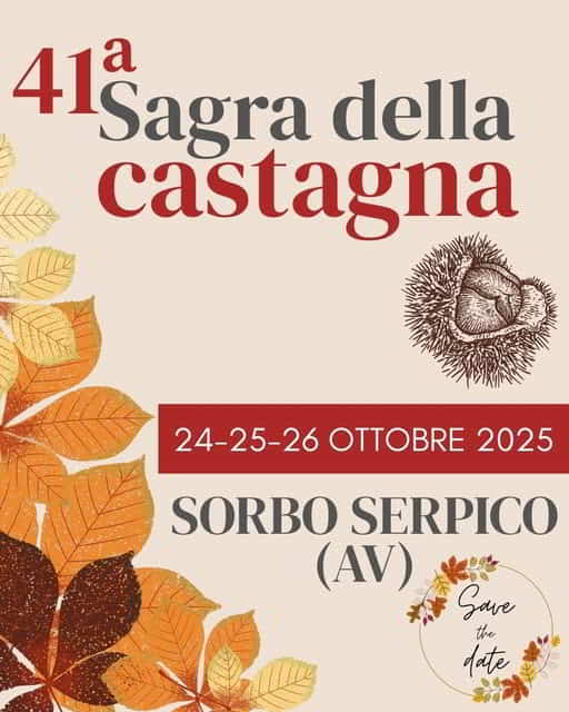 Ufficializzate le date della 48esima edizione della “Sagra della Castagna di Serino”. La manifestazione si terrà da venerdì 10 a domenica 12 ottobre 2025 presso la frazione Rivottoli di Serino, in provincia di Avellino. (clicca qui per il programma dettagliato)
