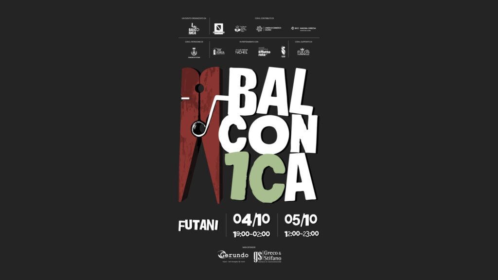 Balconica è il primo festival italiano che porta musica, teatro e arte sui balconi delle case. Succede a Futani, nel cuore del Parco Nazionale del Cilento, dove gli abitanti aprono le proprie case e i performer arrivano da tutta Europa per esibirsi in una cornice unica. Niente palchi, niente sedie: le strade diventano platea, i balconi palcoscenici. Balconica è vita reale, incontro diretto tra persone e artisti. È collettività e collaborazione, un modo diverso di immaginare il territorio attraverso la riappropriazione dello spazio pubblico. Un festival, in programma sabato 4 ottobre dalle ore 19.00 alle ore 2.00 e domenica 5 ottobre dalla ore 12.00 alle ore 23.00 che trasforma il quotidiano in scena, la strada in luogo di incontro, i balconi in scene aperte su un racconto straordinario. (clicca qui per il programma dettagliato)