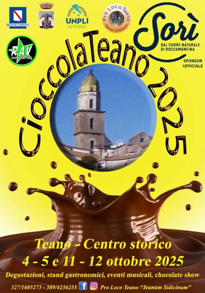 Due weekend al sapore di cioccolato, quelli in programma a Teano, in provincia di Caserta, sabato 4, domenica 5, sabato 11 e domenica 12 ottobre 2025. Le strade del borgo casertano ospiteranno una nuova edizione di Cioccolateano, la manifestazione organizzata annualmente dalla locale Pro Loco. Cioccolateano non è solo un evento, ma un patrimonio di emozioni, sapori e tradizioni che ogni anno unisce migliaia di persone, anima le nostre strade, valorizza il nostro museo archeologico e sostiene le attività locali.