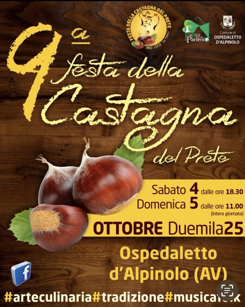 Sesta edizione per la Festa della Castagna del Prete ad Ospedaletto d’Alpinolo. La manifestazione è in programma sabato 4 e domenica 5 ottobre 2025, nel centro storico del borgo ai piedi di Montevergine, in provincia di Avellino. L’evento è organizzato dalla Pro Loco La Fenice. Nel corso delle due serate sarà possibile degustare i piatti tipici della tradizione irpina accompagnati da ottimo vino locale e birra alla castagna.