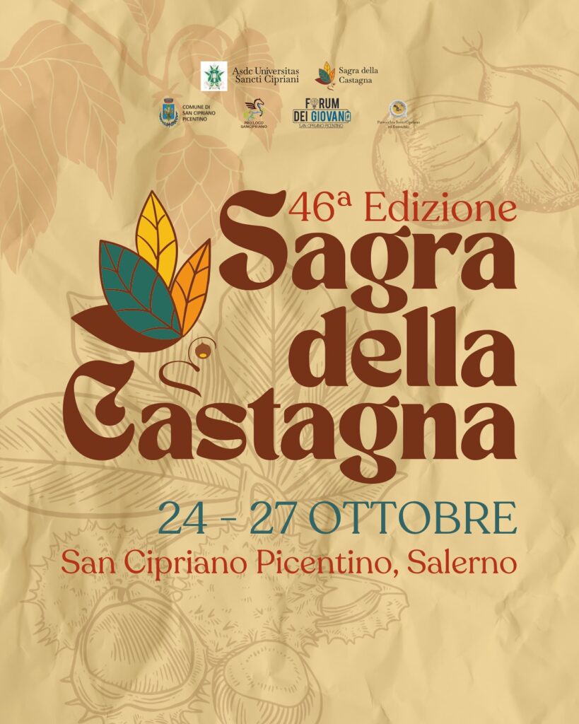 Si rinnova l’imperdibile appuntamento gastronomico dell’autunno a San Cipriano Picentino, in provincia di Salerno, dove, per il 46esimo anno, da venerdì 24 a lunedì 27 ottobre 2025 si svolgerà la “Sagra della Castagna”. Si tratta di una vera e propria esperienza sensoriale che allieterà i palati e condurrà i visitatori in un viaggio nel tempo alla scoperta degli antichi sapori della tradizione grazie allo scintillio delle immancabili “vrulere” per la cottura delle castagne, al profumo dei piatti cucinati con maestria da mamme e nonne locali – come il risotto ai funghi porcini, o pan mbuss ndi fasul e i calzoncelli – e alla presenza di “sua maestà” il vino.