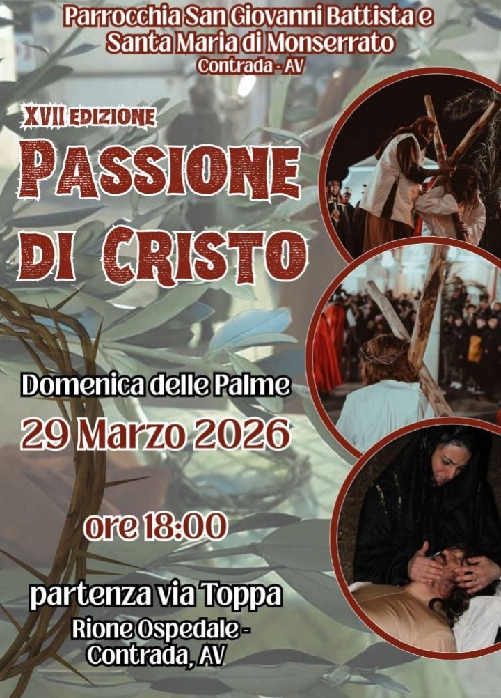 Edizione numero 34 per la Via Crucis Vivente di Cervinara, organizzata annualmente dall’Associazione “Via Crucis Vivente di Cervinara – A Cruce Salus“. La rappresentazione si terrà venerdì 3 aprile 2026.