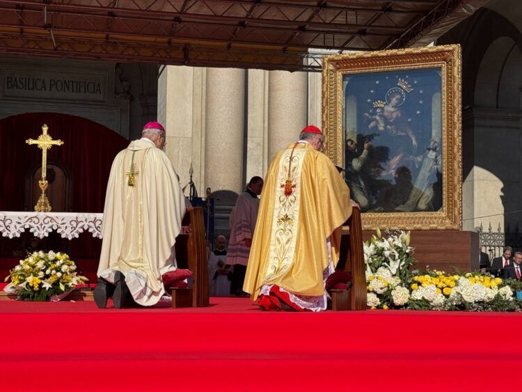 Il Cardinale è stato accolto dal saluto dell’Arcivescovo di Pompei, Monsignor Tommaso Caputo, che ha rivelato un grande desiderio di tutti i devoti della Madonna del Rosario: accogliere in Santuario Papa Leone XIV. Per l’intera giornata di oggi, che ha avuto inizio all’alba con la discesa del Quadro della Madonna dinanzi al presbiterio della Basilica, migliaia di fedeli si sono messi in fila, e continueranno a farlo nelle prossime ore, per venerare da vicino la cara Immagine della Vergine.