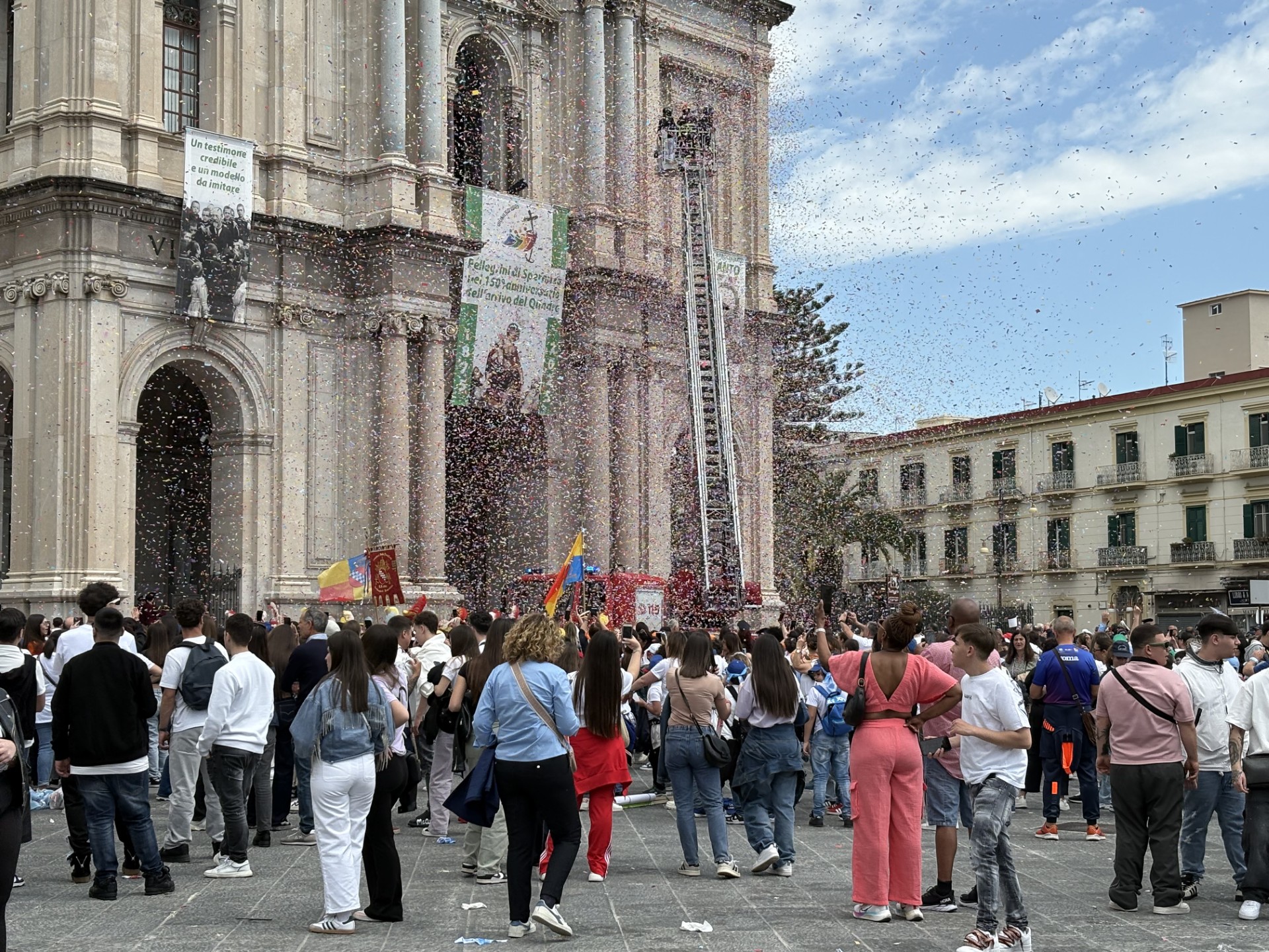 Infine, ci sarà la discesa dell’edilizia acrobatica dal Campanile del Santuario, accompagnata dalle voci degli Anime Spers. La Marcia si concluderà sulle note di “O Sole Mio”, cantata da Dario Sebastiani: un inno di speranza che elevandosi da Pompei, si augura di arrivare al mondo intero.