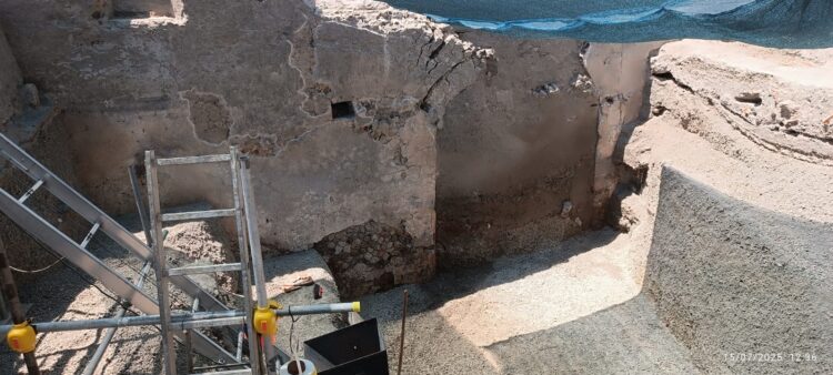 Il grande portone d’accesso alla villa, era sormontato da un arco (solo in parte conservato), affiancato da paracarri in muratura e da un tratto della via Superior, lastricata in pietra lavica. Di fronte all’ingresso è stata rilevata la presenza di una panca in cocciopesto. Al di sopra del muro è stata inoltre individuata una cisterna rettangolare voltata, in relazione con un sistema idrico di raccolta e regimentazione delle acque. Lo scavo ha inoltre documentato in modo esemplare la sequenza stratigrafica dell’eruzione del 79 d.C., con livelli di pomici da caduta e flussi piroclastici in posto, che sigillavano gli ambienti della villa. Sotto il livello delle pomici è emersa anche una porzione di paleosuolo sistemato “a conchette”, tecnica agricola che testimonia la gestione del paesaggio agrario in epoca romana. Il prosieguo delle ricerche consentirà di completare l’indagine degli ambienti ancora in parte sepolti della villa, in particolare del quartiere servile, aprendo nuove prospettive di studio e valorizzazione di uno dei complessi residenziali più celebri e affascinanti dell’antica Pompei. Intanto, il Parco sta cercando i fondi per finanziare il prosieguo dello scavo, coinvolgendo partner privati e sponsor, anche attraverso l’attivazione dell’ufficio Fundraising.