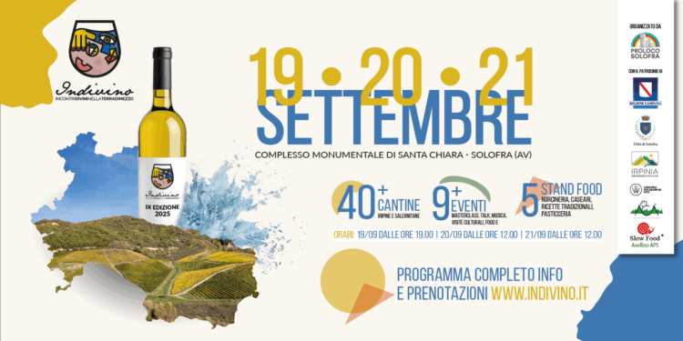 Il Complesso Monumentale di Santa Chiara di Solofra, in provincia di Avellino, torna ad accogliere Indivino, la rassegna che unisce vino, cibo, cultura e territorio, giunta quest’anno alla sua nona edizione. Dal 19 al 21 settembre, Solofra diventerà crocevia di esperienze sensoriali e culturali che racconteranno la Campania del vino e delle tradizioni gastronomiche.