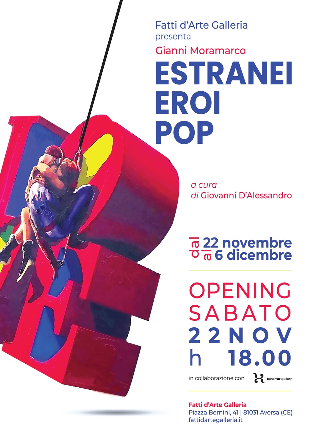 Nella sede di Fatti d’Arte ad Aversa, da sabato 22 novembre aprirà la mostra personale di Gianni Moramarco “Estranei Eroi Pop” a cura di Giovanni D’Alessandro.