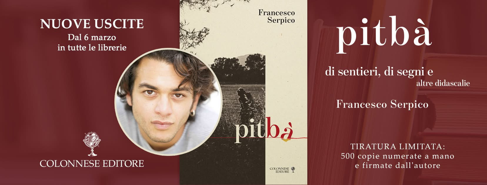 Un viaggio tra immagini e versi. il nuovo e curatissimo volume di Francesco Serpico. Arriva in tutte le librerie italiane, il 6 marzo, “Pitbà”, un volume di immagini e versi a tiratura limitata e numerata, opera prima di Francesco Serpico in un’edizione limitata di 500 esemplari numerati: le prime 50 copie contrassegnate da numeri romani e le successive 450 copie in numeri arabi. Tutti gli esemplari sono firmati dall’autore.