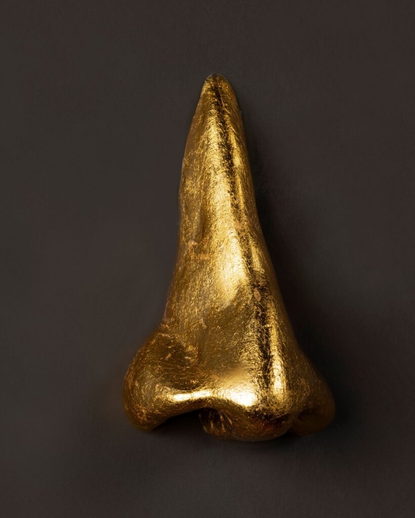 Il percorso della mostra si chiude con la piccola scultura dal titolo Naso (1997-2024) esposta per la prima volta in assoluto: un “omaggio a San Gennaro” nel luogo a lui dedicato. Un naso realizzato in gesso dorato che svela un’antica leggenda e, nello stesso tempo, raffigura il naso stesso dell’artista in una versione modellata e ingrandita, derivata da un autoritratto realizzato dopo un doloroso incidente, una sorta di ex voto dedicato al Santo Patrono.