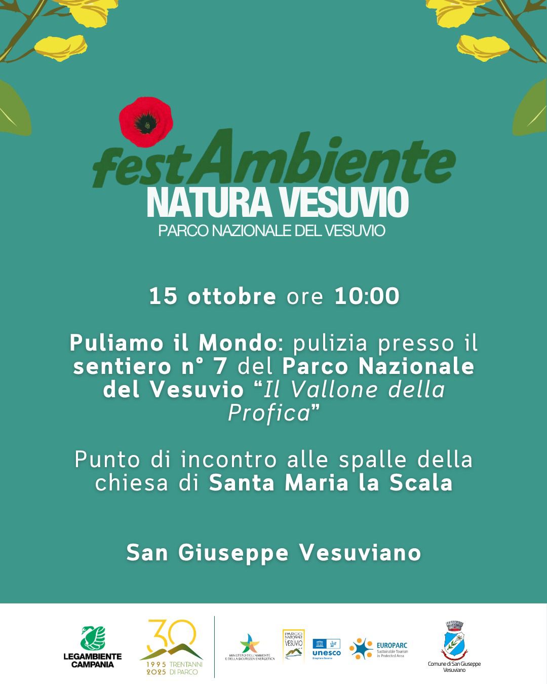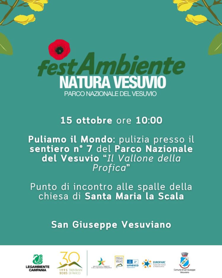 Valorizzazione del territorio e cittadinanza attiva, al via l’evento ‘Puliamo il mondo 2025’. Appuntamento mercoledì 15 ottobre, a partire dalle ore 10, presso il Sentiero n. 7 del Parco Nazionale del Vesuvio, nel Vallone della Profica Paliata a San Giuseppe Vesuviano. L’iniziativa sarà un’occasione educativa e formativa per i ragazzi, che potranno vivere un’esperienza diretta di cittadinanza attiva e di cura del bene comune in un contesto di straordinario valore naturalistico.