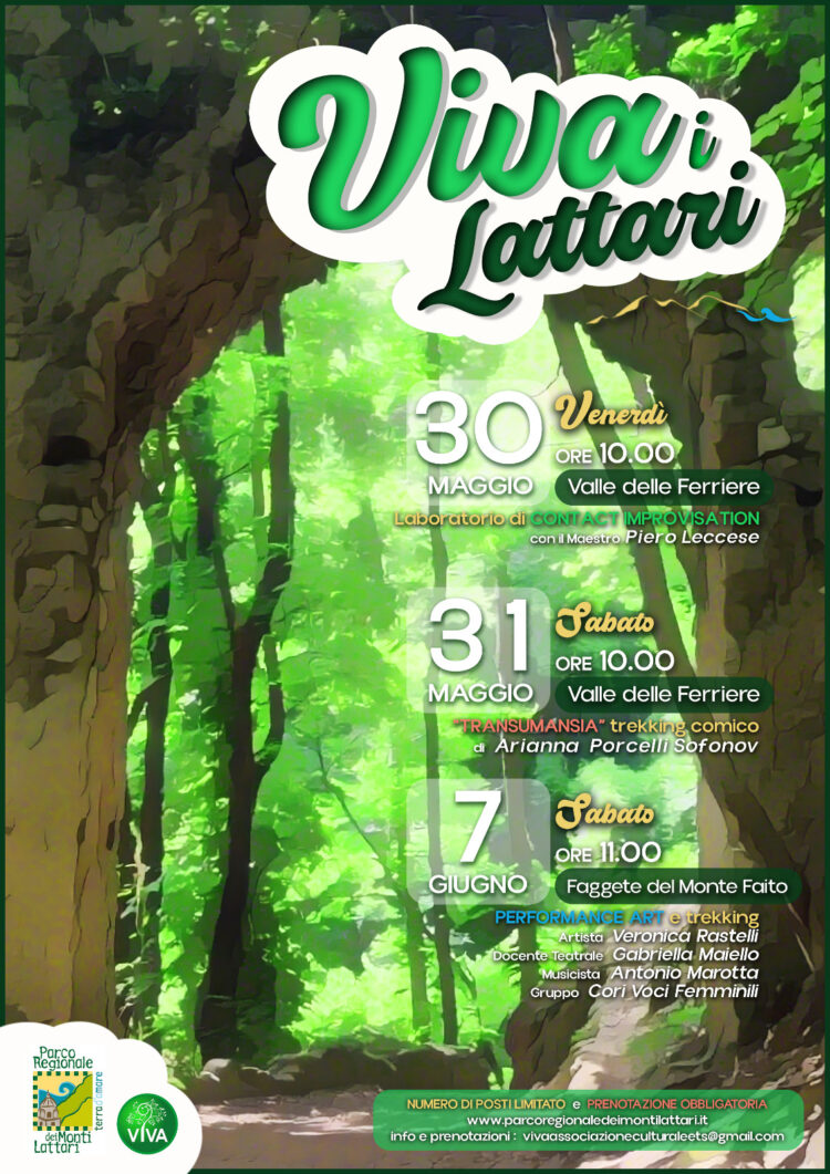 Il programma di “Viva i Lattari” prende il via venerdì 30 maggio, sempre nella Valle delle Ferriere, con un laboratorio di Contact Improvisation a cura del maestro Piero Leccese: un’esperienza riservata a 30 giovani danzatori selezionati da scuole di danza e teatro della Campania, che unisce movimento, ascolto e relazione nello straordinario contesto naturale del Parco.